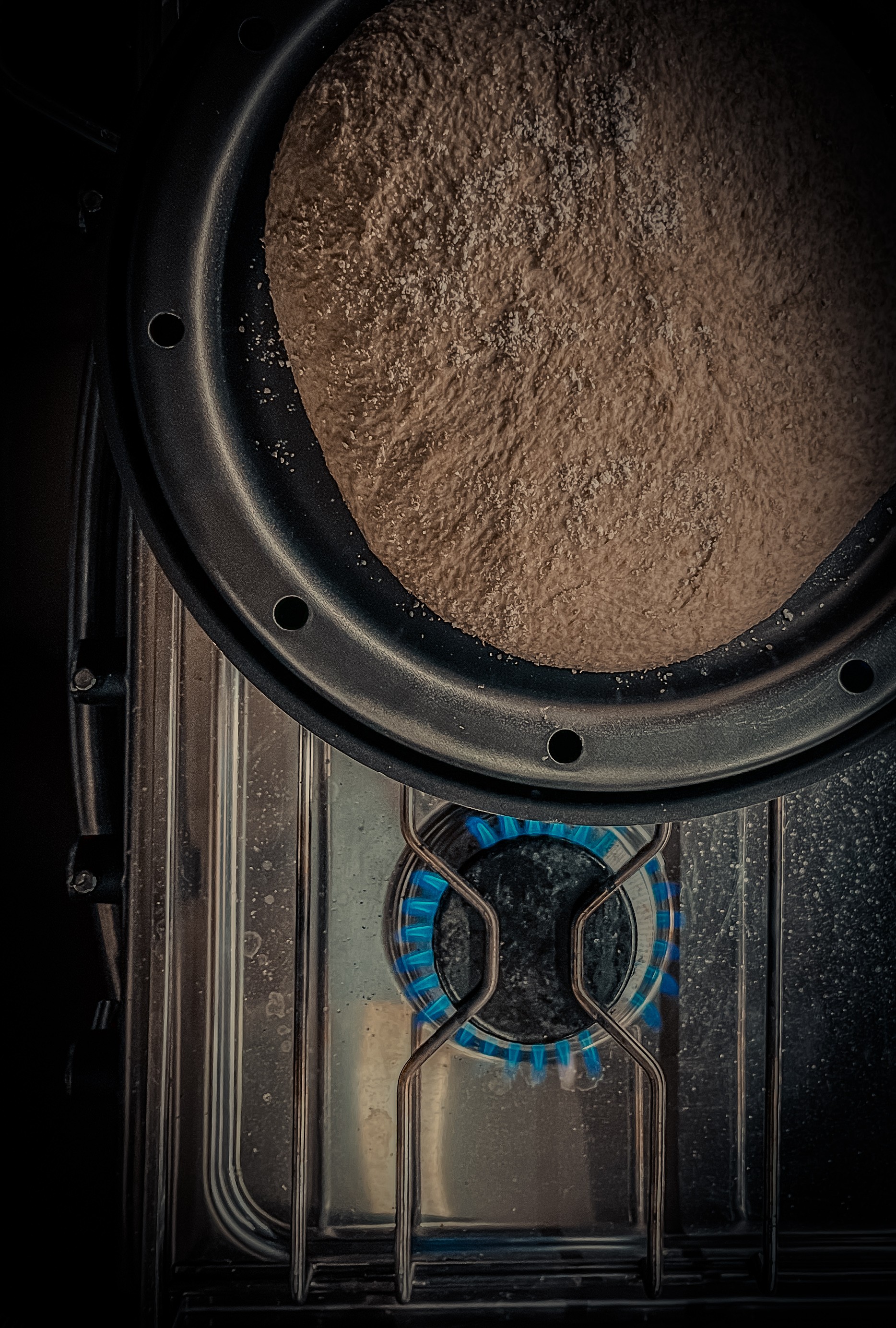 Det enkle livet om bord: litt gass, litt tålmodighet og et brød på vei opp. Det er noe eget med å lage maten selv – spesielt når dagen starter med lukten av ferskt brød.