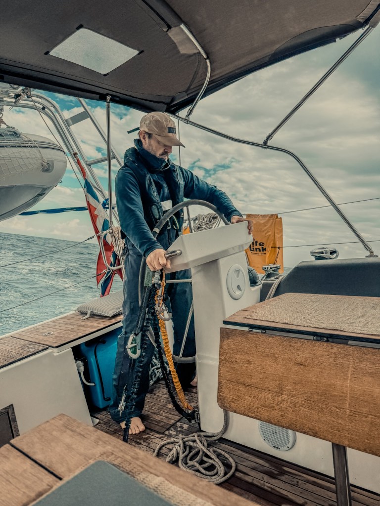 Etter mange døgn med frisk vind og skikkelige krengninger, har sjøen endelig roet seg litt. For første gang på lenge kunne vi samle oss til en felles frokost – uten å bli kastet sidelengs eller banket gul og blå mot skapdører og bordkanter. Bare det føles som luksus nå.