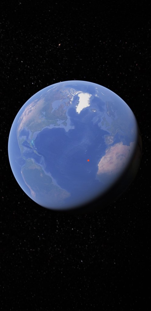 Her er vi – midt ute i ingenting, men samtidig midt i alt. Et lite rødt punkt i et stort, blått hav. Det føles både smått og ganske rått på samme tid.